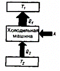 Однако второе начало термодинамики не следует представлять так, что оно совсем запрещает переход теплоты от менее нагретого тела к более нагретому. Ведь именно такой переход осуществляется в холодильной машине. Но при этом надо помнить, что внешние силы совершают работу над системой, т. е. этот переход не является единственным результатом процесса.