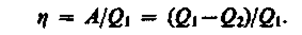 Принцип действия теплового двигателя приведен на рис. 85. От термостата* с более высокой температурой T1 называемого нагревателем, за цикл отнимается количество теплоты Q1, a термостату с более низкой температурой Т2,называемому холодильником, за цикл передается количество теплоты Q2, при этом совершается работа A = Q1 — Q2.