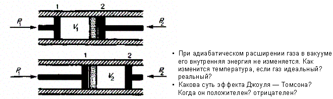 Изменение температуры реального газа в результате его адиабатического расширения, или, как говорят, адиабатического дросселирования — медленного прохождения газа под действием перепада давления сквозь дроссель (например, пористую перегородку), называется эффектом Джоуля — Томсона. Эффект Джоуля — Томсона принято называть положительным, если газ в процессе дросселирования охлаждается (DT < 0), и отрицательным, если газ нагревается (DT > 0).