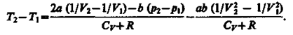 Ради простоты рассмотрим 1 мольгаза. Подставляя в формулу (64.2) выражение (63.3) и рассчитанные из уравнения Ван-дер-Ваальса (61.2) значения p1V1 и p2V2 (символ «m» опять опускаем) и производя элементарные преобразования, получаем