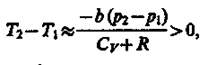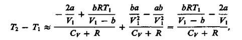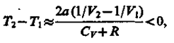 Из выражения (64.3) следует, что знак разности (Т2 – T1)зависит от того, какая из поправок Ван-дер-Ваальса играет большую роль. Проанализируем данное выражение, сделав допущение, что p2 ≈ p1 и V2 ≈ V1