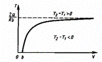 т. е. знак разности температур зависит от значений начального объема V1и начальной температуры T1.