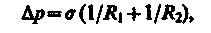 Для сферической искривленной поверхности (R1 = R1 = R)выражение (68.3) переходит в (68.1), для цилиндрической (R1 = Rи R2 = ¥ ) — избыточное давление