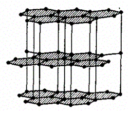 В некоторых твердых телах одновременно может осуществляться несколько видов связи. Примером может служить графит (гексагональная решетка). Решетка графита (рис. 105) состоит из ряда параллельных плоскостей, в которых атомы углерода расположены в вершинах правильных шестиугольников. Расстояние между плоскостями более чем в два раза превышает расстояние между атомами шестиугольника.