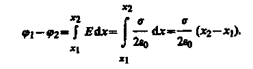 где s — поверхностная плотность заряда. Разность потенциалов между точками, лежащими на расстояниях х1 и х2от плоскости, равна (используем формулу (85.1))