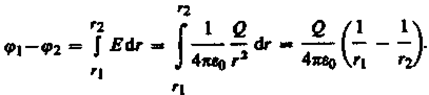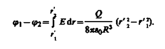 . Разность потенциалов между двумя точками, лежащими на расстояниях r1 и г2 от центра сферы (r1 > R, r2 > К, r2 > r1), равна