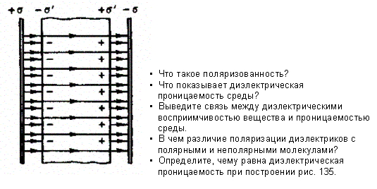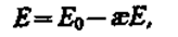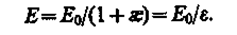 Таким образом, появление связанных зарядов приводит к возникновению дополнительного электрического поля Е' (поля, создаваемого связанными зарядами), которое направлено против внешнего поля Е0 (поля, создаваемого свободными зарядами) и ослабляет его. Результирующее поле внутри диэлектрика