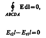 Рассмотрим связь между векторами Е и D на границе раздела двух однородных изотропных диэлектриков (диэлектрические проницаемости которых e1и e2 при отсутствии на границе свободных зарядов. Построим вблизи границы раздела диэлектриков 1 и 2 небольшой замкнутый прямоугольный контур ABCDA длины l, ориентировав его так, как показано на рис. 136. Согласно теореме (83.3) о циркуляции вектора Е,