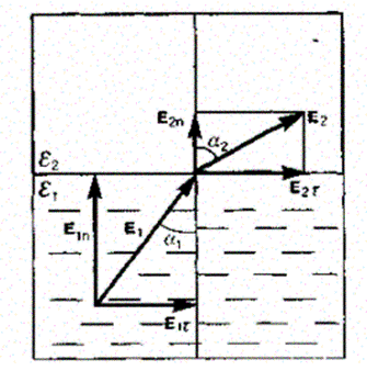 Эта формула показывает, что, входя в диэлектрик с большей диэлектрической проницаемостью, линии Е и D удаляются от нормали.