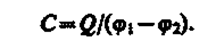 Так как поле сосредоточено внутри конденсатора, то линии напряженности начинаются на одной обкладке и кончаются на другой, поэтому свободные заряды, возникающие на разных обкладках, являются равными по модулю разноименными зарядами. Под емкостью конденсатора понимается физическая величина, равная отношению заряда Q, накопленного в конденсаторе, к разности потенциалов (j1 - j2)между его обкладками: