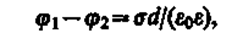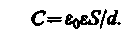где e — диэлектрическая проницаемость. Тогда из формулы (94.1), заменяя Q= sSс учетом (94.2) получим выражение для емкости плоского конденсатора: