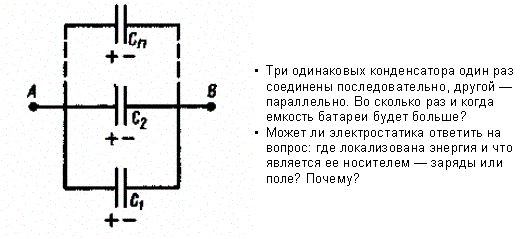 Для увеличения емкости и варьирования ее возможных значений конденсаторы соединяют в батареи, при этом используется их параллельное и последовательное соединения.