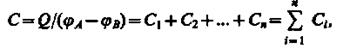т. е. при параллельном соединении конденсаторов она равна сумме емкостей отдельных конденсаторов.
