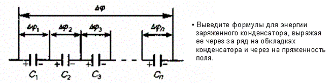 У последовательно соединенных конденсаторов заряды всех обкладок равны по модулю, а разность потенциалов на зажимах батареи