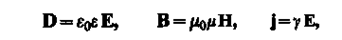 где e0 и m0 — соответственно электрическая и магнитная постоянные, eи m— соответственно диэлектрическая и магнитная проницаемости, g— удельная проводимость вещества,