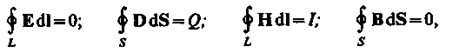 Итак, полная система уравнений Максвелла в интегральной форме: