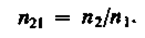 Относительный показатель преломления двух сред равен отношению их абсолютных показателей преломления: