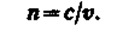 Абсолютным показателем преломления среды называется величина n, равная отношению скорости с электромагнитных волн в вакууме к их фазовой скорости v в cреде: