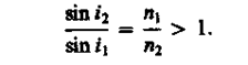 Если свет распространяется из среды с большим показателем преломления n1(оптически более плотной) в среду с меньшим показателем преломления n2 (оптически менее плотную) (n1 > n2),например из стекла в воду, то, согласно (165.4),