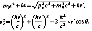 где W0 = m0c2—энергия электрона до столкновения, eg = hv — энергия налетающего фотона,