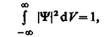 Так как |Y|2dF определяется как вероятность, то необходимо волновую функцию Y нормировать так, чтобы вероятность достоверного события обращалась в единицу, если за объем V принять бесконечный объем всего пространства. Это означает, что при данном условии частица должна находиться где-то в пространстве. Следовательно, условие нормировки вероятностей