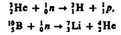 Под действием медленных нейтронов на некоторых легких ядрах наблюдаются также реакции захвата нейтронов с испусканием заряженных частиц — протонов и a-частиц (под действием тепловых нейтронов):