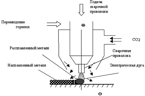 Углекислый газ препятствует негативному воздействию атмосферы на процесс сварки. Высокая температура дуги частично разлагает углекислый газ на окись углерода и кислород. В результате образуется смесь из трех газов в зоне дуги: кислорода, углекислого газа и окиси углерода.