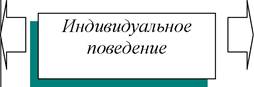 | Индивидуальные характеристики: 1. Способности. 2.Предрасположенности. 3. Потребности 4. Ожидания 5. Восприятия 6. Отношения 7. Ценности | | Внешняя среда индивида: 1. Группы. 2. Нормы. 3. Ценности. 4. Установки 5. Лидеры |