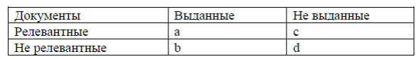 Таблица оценки качества ИПС в TREC (РОМИП):