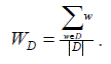 где WD – вес сообщения, w – ключевое слово из сообщение, |D| - количество ключевых слов в документе. В рамках модели как вес ключевых слов употребится частота их появлений во входном информационном потоке. В свою очередь, эта частота зависит от объема самого потока и от количества уникальных слов, т.е. объема автоматически формированного словаря уникальных слов.