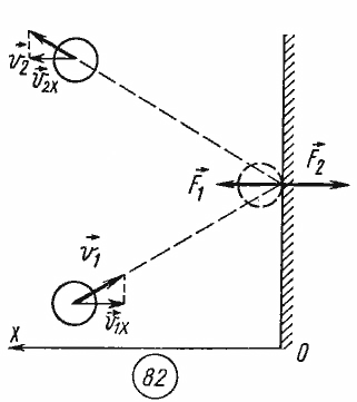 вектора скорости на ось ОХ, перпендикулярную стенке, изменяет свой знак на противоположный, но остается постоянной по модулю