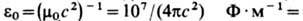 где m0 - магнитная постоянная. В отличие от диэлектрич. проницаемости e, зависящей от типа вещества, темп-ры, давления и др. параметров, Э. п. e0 зависит только от выбора системы единиц.