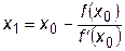 . Далее функция f (x) аппроксимируется ее производной, новое приближение к корню определяется как точка пересечения касательной с осью абсцисс. Значение производной в точке x0 равно