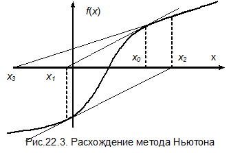 или неудачном начальном приближении могут возникнуть проблемы со сходимостью, когда последующее приближение хуже предыдущего. Подобный случай показан на рис. 22.3.