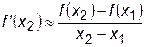 Значение производной можно вычислить приблизительно по значениям функции в двух точках x1 и x2, как это показано на рис.22.4.