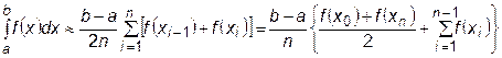 Метод трапеций удобно применять, когда подинтегральная функция задана табличным способом и известны значения функции только на границах подинтервалов.