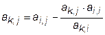 Теперь необходимо преобразовать матрицу таким образом, чтобы в i -том столбце элементы ниже главной диагонали с индексами i,k стали равными нулю. Здесь параметр k изменяется от k=i +1 до k = n. Сначала умножим каждый элемент k -той строки на величину