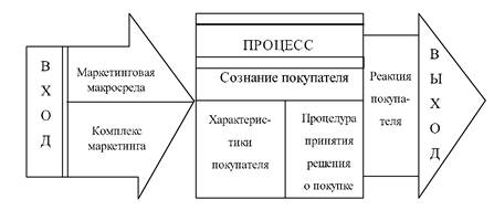 Всякий, кто желает продать какой-либо продукт, услугу или идею, осознанно или интуитивно стремится понять истинные мотивы поведения потребителей, выявить его скрытые механизмы. Для того, чтобы в формализованном виде представить сложный процесс покупательского выбора, специалисты [5,6,7,9] в области маркетинга используют известный прием моделирования, основанный на принципе “черного ящика” (рис.3).