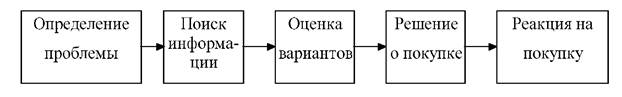 Процесс принятия решения о покупке, как отмечалось ранее, представляет собой процедуру осуществления потребительского выбора. Как всякая процедура, он характеризуется упорядоченной последовательностью этапов (рис.5), через которые проходит потребитель.