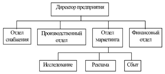 Функциональная структура маркетинговой службы организации означает, что маркетинг выступает как один из видов деятельности, обеспечивающих функционирование предприятия (рис.24).