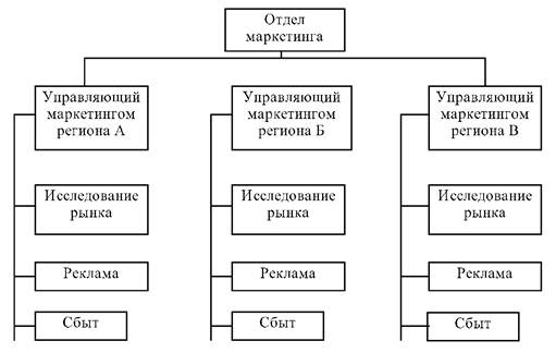 Региональная ориентация по своей структуре аналогична товарной, однако за основу берется разделение по рынкам сбыта (рис.26).