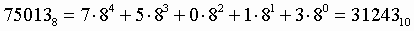 2. Для перевода восьмеричного числа в десятичное необходимо его записать в виде многочлена, состоящего из произведений цифр числа и соответствующей степени числа 8, и вычислить по правилам десятичной арифметики: