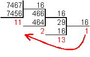6. Для перевода десятичного числа в шестнадцатеричную систему его необходимо последовательно делить на 16 до тех пор, пока не останется остаток, меньший или равный 15. Число в шестнадцатеричной системе записывается как последовательность цифр последнего результата деления и остатков от деления в обратном порядке.