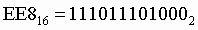 10. Для перевода шестнадцатеричного числа в двоичное необходимо каждую цифру заменить эквивалентной ей двоичной тетрадой.