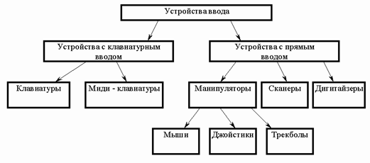 Ниже приведена классификация устройств ввода: