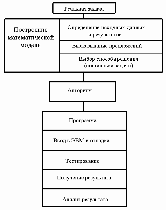Первоначально ЭВМ были созданы для вычислений, но постепенно на ней стали решать задачи по физике, химии, биологии, управлению технологическими процессами, рисованию мультфильмов и т.д., т.е. для решения задач с математикой непосредственно не связанных. В общем случае выделяют несколько этапов в подготовке и решении задач на ЭВМ.