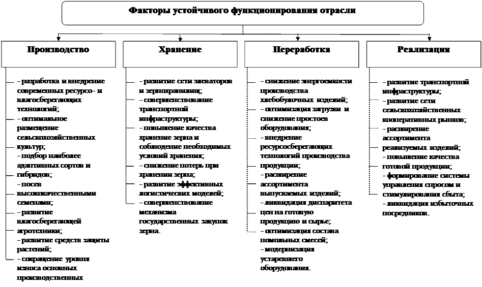 Третья группа включает в себя условия, складывающиеся в результате осуществления определенных мер по развитию сельского хозяйства: обеспеченность материально-техническими ресурсами, платежеспособность сельскохозяйственных товаропроизводителей, квалификация кадров, возможности инновационного развития, функционирование продовольственного рынка. Совокупность внутренних и внешних относительно подкомплекса факторов, влияющих на устойчивость развития регионального зернопродуктового подкомплекса в целом и каждого из его уровней, обусловливает необходимость определения основных элементов воздействия на всех этапах производственного цикла и ключевых взаимосвязей, обеспечивающих устойчивость всего зернопродуктового подкомплекса. Обеспечение устойчивого развития селького хозяйствакак основы зернопродуктового подкомплекса связано, прежде всего, с преодолением отрицательного влияния природных и экономических факторов, дестабилизирующих сельскохозяйственное производство и в значительной мере характеризующихся случайностью проявления (рис. 15).