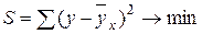 Для оценки параметров уравнений регрессии наиболее часто используется метод наименьших квадратов (МНК), суть которого заключается в следующем требовании: искомые теоретические значения результативного признака должны быть такими, при которых бы обеспечивалась минимальная сумма квадратов их отклонений от эмпирических (фактических) значений, т.е.