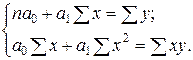 Система нормальных уравнений МНК для линейной парной регрессии имеет следующий вид: