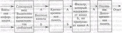 Полученные результаты использовались Д. Бродбентом для разработки модели перцептивного внимания. Схематично эта модель представлена на рис. 5.1.